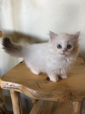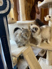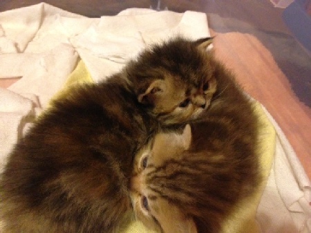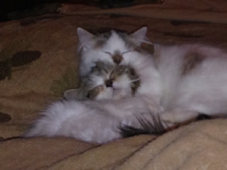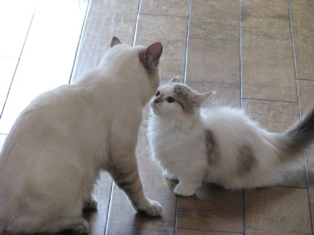 Gidget and Kubi, our first kittens, (below). Both were Minuet Talls, one a female and one a male, one a long hair and the other a short hair.