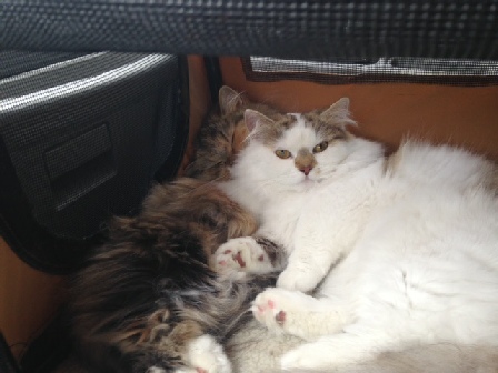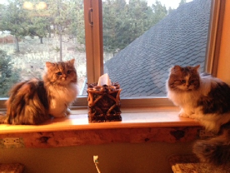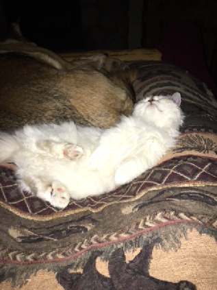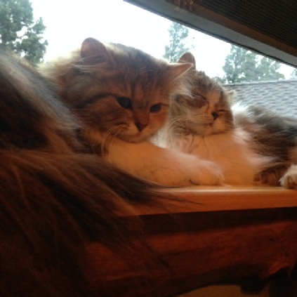 Our little Cosette (right) with our new girl Foxxy. Foxxy lives part time with us and her co-