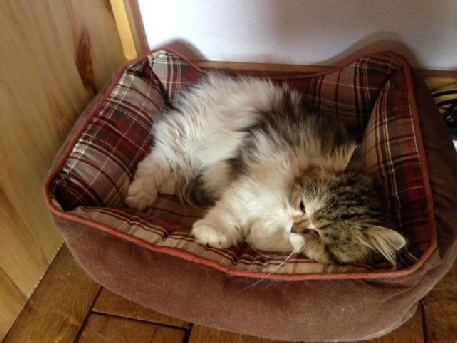 Our new stud, Peter, loves taking over any kind of cubby hole.