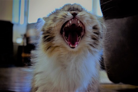Claude hopped up on turkey baby food at the Nashville cat show.