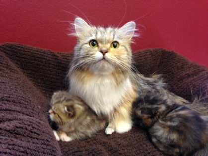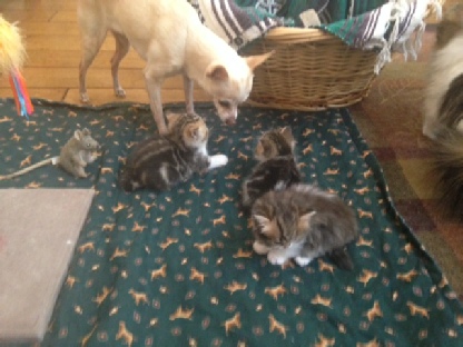 Josie with her two kittens, (below). She is definitely a proud momma.