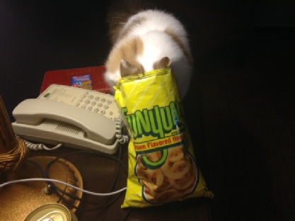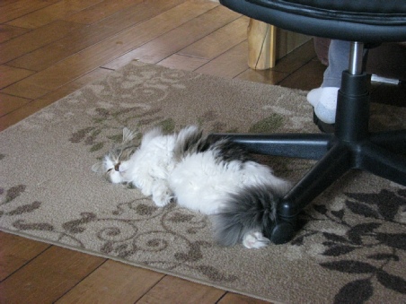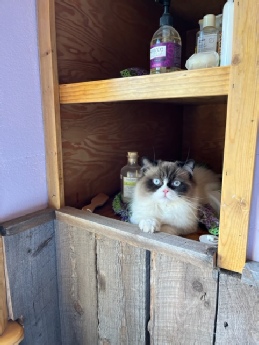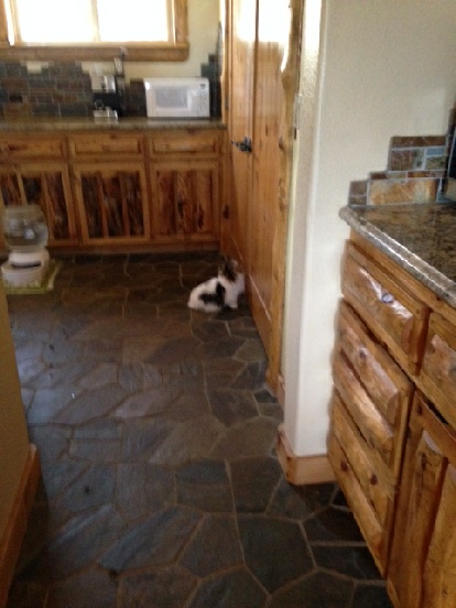 The cats constantly find themselves in places where you have to watch what you do so something doesn’t get rolled over or stepped on.