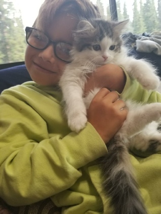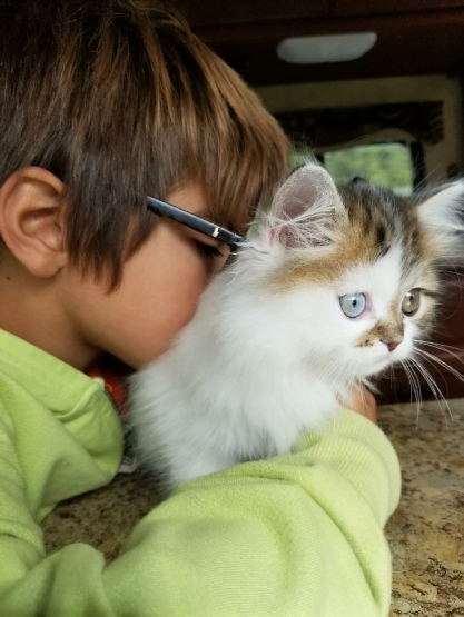 To the left, Leo on the same trip with my daughter’s son, Maison. Both kittens loved traveling in the RV and staying in hotels at night. They are proof that cats don’t necessarily want to stay home when their family goes on vacation.