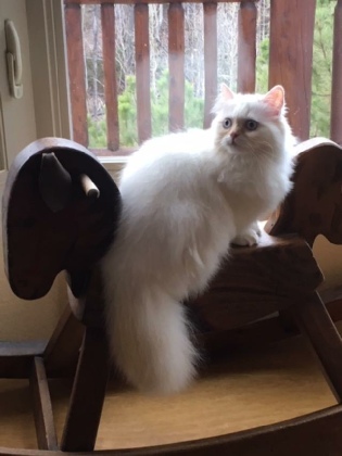 (Below) Sydney hanging out on a rocking horse in the bay window.