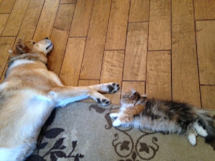 Josie chillin’ with Kodiak, my husky/shepherd. He loves kittens, although Josie is all grown up now.