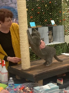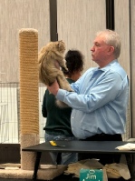 Claude’s tolerance with other cats is slowly getting better. We either walked around among them, or he stayed on the benching table, where people could get to know him better. Our next show is in Brighton, CO (Denver), on the weekend of February 4-