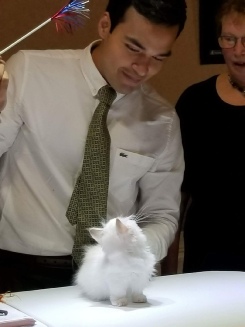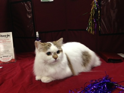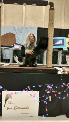 Foxxy, being shown by Tina, got 8 out of 12 finals. She did really well for such a young kitten. She even got second place in the cat costume contest because of the sheer cuteness of her. I should note that Cosette, dressed as an alpaca, didn’t even place in the cat costume contest. I love Cosette and she is the most cherished cat in the show hall among spectators, but definitely not among the judges.