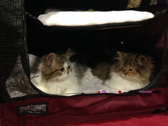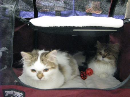 The whole family took the opportunity to go to Cheyenne, WY for the first show ever of the newly minted cat club, Prairie Winds. Hubby came along, which means all the dogs and cats–including Bing’s two little kittens, joined us. It’s part of our socializing training with the kittens to get them travel happy, and this was the perfect opportunity to do so. Both Buster and Brinn enjoyed the new experience and got a chance to meet all the dogs.