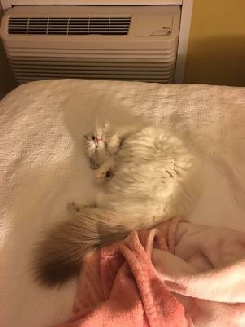 I am still reeling from losing Cosette. Going to shows is like a knife to my heart. But I still have shows to go to and Tina Martin had her heart set on meeting me in Texas to spend the weekend together. So I brought Foxxy, Sydney and Camila, a cat I am babysitting for Anyi Yang of Ccatmistry Cattery in Vancouver, Canada, which I picked up in Canada the week before. In Temple, Foxxy was having her final kitten show on Saturday and would show as an adult on Sunday. She finaled four times on Saturday and twice on Sunday. Camila got one final, which is good, considering she hasn’t been showing for a while. Sydney only got four finals. But I had a great time with my friend and co-