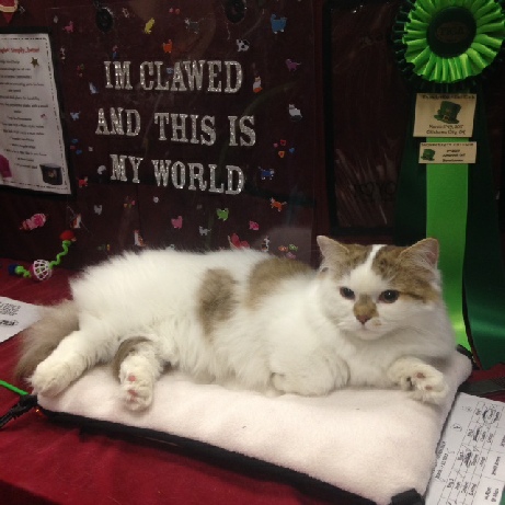 Our friend, Brenda, really cleaned up with finals. She was showing a beautiful Norwegian Forest Cat in Alter Class (not competing against Claude) and placed first four times. Congratulations, Reagan. Reagan supremed over the weekend, the highest title to achieve in showing. So proud of you, Brenda and Reagan. Thanks for sharing the weekend with us.