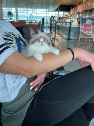My daughter holding Cosette at the airport. She is not looking forward to a 9.5 hour nonstop flight to Munich.