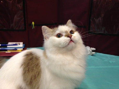 Weirdly enough, Cosette is the one I am really proud to show because she was from my breeding. I raised her from birth and she is my current heart cat. She makes me smile every time I see her and she is truly my joy. That’s why I proudly present her in rings, but then I am heartbroken, after watching her play with the judge, for her to get last, or second to last place. I just can’t understand how judges assume she is sickly when she plays so excitedly. And she sits attentively while she is waiting to be judged. This is one of the few times in my decade of show cats that I have been brought to tears.