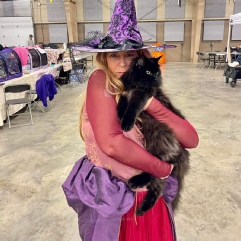 I’ll give Jackie Rose of Yellow Rose Cat Club credit for doing a TICA cat show at the Cat Fest 2025 in Colorado Springs. Our club offered her the use of our equipment and manual labor for setup and tear down, so it was a very exhausting day. But I was excited to have Cosette compete against four other Household Pet Kittens to try to get her last points for maybe an international award. But, sadly, all the judges except Fate Mays, look at my kitten as ugly because her face is not symmetrical. They either gave her last place or second to last place (once). But Fate Mays gave her Best HHP Kitten. Unfortunately, those points won’t give her enough points to get an international award. My heart is crushed because I have been showing her so often and she does everything she’s supposed to. But I guess it is a beauty contest for Household Pets. In my eyes, she is beautiful. Oh well, beauty is in the eyes of the beholder. This marks Cosettes last Household Pet Kitten show and she will show in HHP Adult class starting next weekend, in El Reno. My fear is that she will no be dumped by the same judges who gave her last place. I can’t convey enough how much that breaks my heart, because she gives me so much joy.