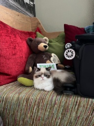Not only did we all get together for the weekend in a small town in Washington, but Foxxy Supremed and Sydney became the best Alter in the show. What a great show the two had. Thank you to Mimi Fu for believing in Foxxy as an excellent Minuet longhair. I’m definitely glad I brought both of them. However, I did not appreciate the flu I got from my granddaughter, which is still plaguing me even after a full week of misery.