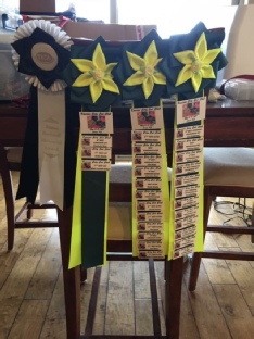 Claude finaled multiple times. He finaled fifth once, fourth once, and third three times in special breed, and tenth twice in all breed. We were very happy with the outcome. In the meantime, we tried our hand at vending. Because there’s a lot of downtime during a show, I’ve been thinking of what I can do to keep busy. I came up with the idea of vending some homemade products, and we tried it for the first time in Aurora. Although there wasn’t a lot of public traffic (given that it was Father’s Day weekend), we still did a modicum of business. More importantly, I was kept busy. We’re going to try it again at the Cheyenne show.