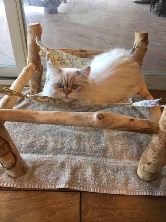 Katy was getting more and more listless by the day. She could barely get up and walk. Her breathing was labored and we carried her around the house to have different exposures and to be a part of the family. I continued to give her her medication, even these new chemotherapy horse pills, which were difficult to get down her throat. My husband and I were using words we didn’t want to mention about Katy’s grim future. I would cry at night, thinking about a life without her. There were nights I was up until 4 a.m., crying to myself. When I’d wake up in the morning, I rushed to find where Katy was and to check on her. Katy took to laying on a little cat cabana beside my bed and I slept with a flashlight on my nightstand. I would turn it on several times during the night to check on her.