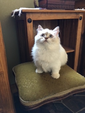 December 20, 2017: Katy came from a good breeder but fate didn’t shine favorably on her. She suffered several health issues in her first few months of life, which led us to have several medical tests done in the course of treatment for those conditions. Every test up until the last one gave us hope that she would not only be healthy, but a good candidate to breed. However, the last test proved the worst news of all, which gave her a grave prognosis for surviving. Given that Katy is a strong kitten now and there is medication to help prolong her life, we are determined to stave off the end for as long as possible. Her quality of life is our main concern and we hope to give her a happy, full one.