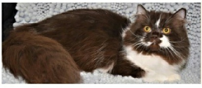 Hugo (left) and Deku (right) are two Minuet Tall boys that were born to Ellie (Gabrielle Landesclaw) and Indy when we were having trouble getting Ellie to breed with Claude, our own boy. Hugo was a surprise, because he was a male chocolate smoke torbie, a rare instance where a torbie turns out male. Deku is a beautiful chocolate smoke and white solid Minuet Tall boy.